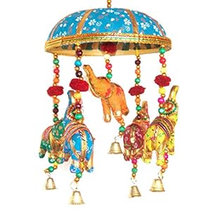 Indian Traditional Elephant Turquoise Umbrella Hanging Layer of Five Elephant