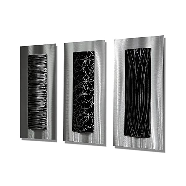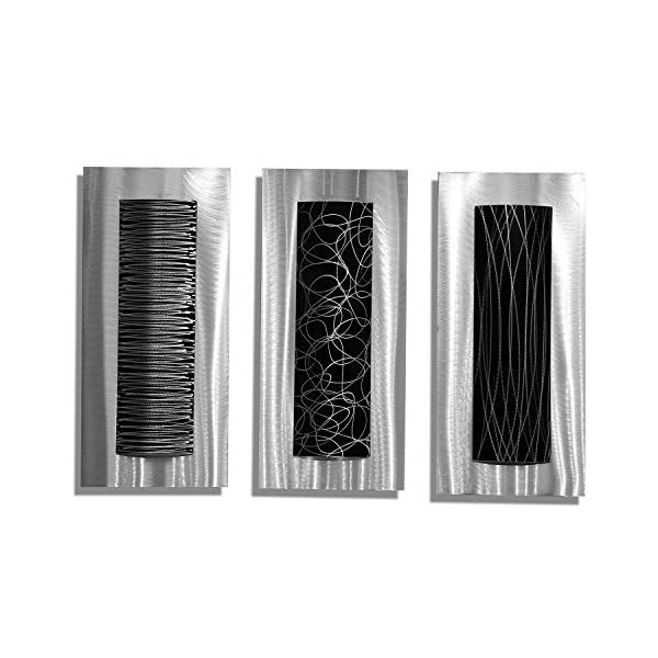 Statements2000 Contemporary Black & Silver Abstract Metal Wall Art Accent Modern Home Decor, Set of Three – Trifecta by Jon Allen