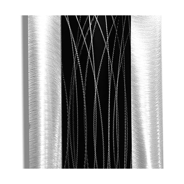 Each handmade piece is signed by American artist Jon Allen and includes a certificate of authenticity. This stunning black & all natural silver wall décor will make stronger any nook in your house with a sophisticated, elegant look. This is an original handcrafted art piece. Jon’s love of all things abstract with influences like Chihuly are present in many of his compositions. You’ll be able to also notice his love of clean, balanced, modern design and similar to elements of Frank Lloyd Wright’s architecture.