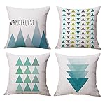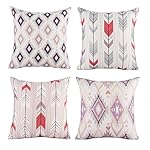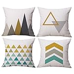BLUETTEK Modern Simple Geometric Style Soft Linen Burlap Square Decor Throw Pillow Covers, 18 x 18 Inches, Pack of 4…