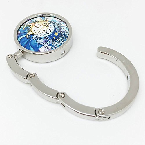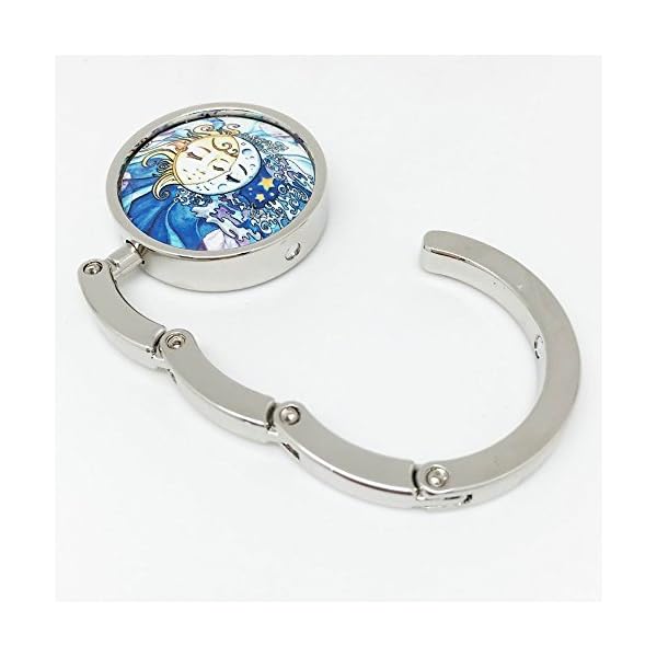 Royceflyer Moon and Sun,Dragonfly,Peacock,Butterfly,Flower Pattern Purse Hanger Handbag Table Hook (Lock Shape 04)